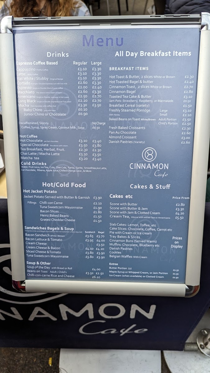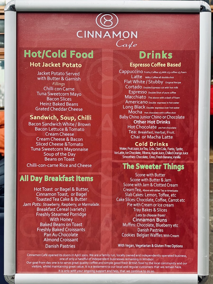 Cinnamon Cafe - Jubilee Arch, nestled in Windsor Royal Station, offers a delightful array of menu options that cater to all tastes. Renowned for its expertly brewed espresso coffee, the cafe features delicious choices like cappuccinos, lattes, and the classic cortado. Each cup is a testament to quality and care.